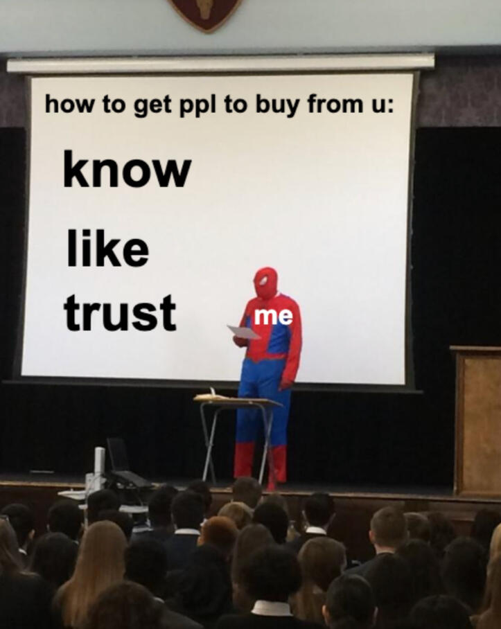 this meme was made for the pineapple pizza lover and sensei to the top ghostwriters, Dakota Robertson.this meme is the hook for an Instagram reel - you probably already have a bit more 'trust' in Dakota even if you don't know him very well...