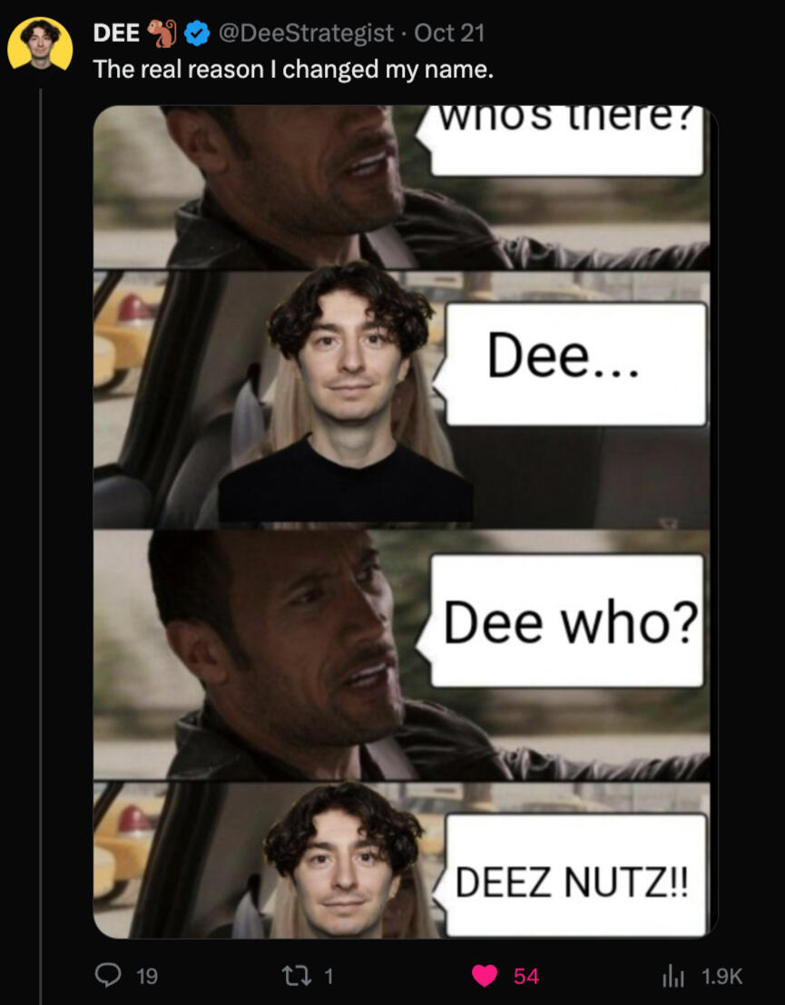 when DEE posted this meme he had under 300 followers btw (so it was a banger)