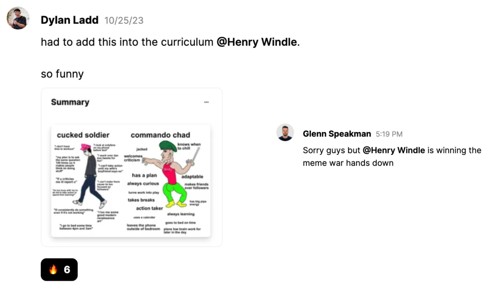 me casually memeifying course content for the Growth Army 2.0 cohort(btw sharing regular memes is great for keeping