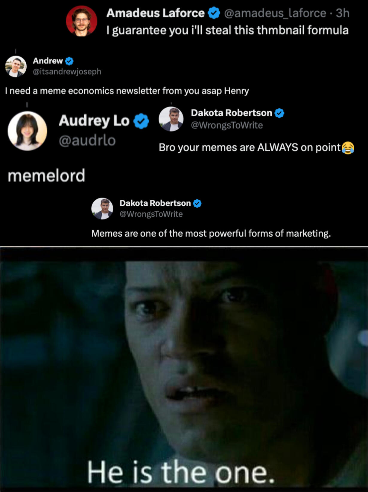 P.S. I only work with cool, fun-loving brands/creators who have great marketing funnels and understand the importance of messaging/positioningP.P.S GIFs, ads, thumbnails, direct 'mememail', emails, videos, witty tweets and regular memes... it's ALL on the table for this memelord!P.P.P.S Scroll to the VERY bottom if u want more info on the man behind the meme... [insert ominous music]